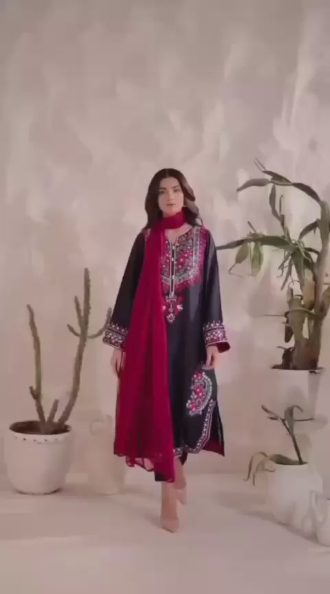 Introducing Secret Solutions' 'Mystique' Ensemble—an expression of modern elegance and sophisticated minimalism. This exquisite three-piece suit is meticulously crafted from premium Plain Raw Silk in a timeless Classic Black.